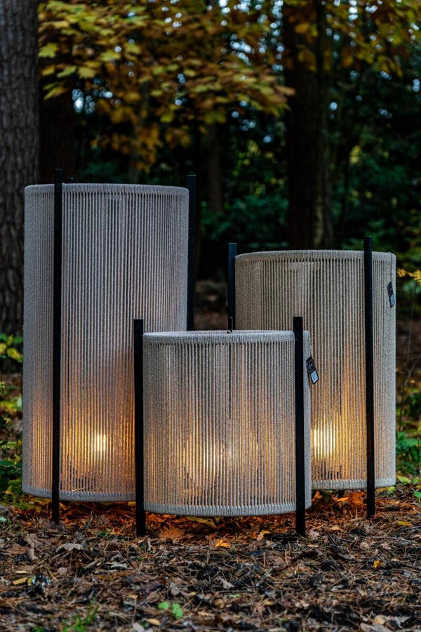 Dankzij haar stoere touwen, stijlvolle uitstraling en warme licht verspreidt ze instant gezelligheid – zowel buiten als binnen in je tuin, terras, poolhouse of woonkamer.