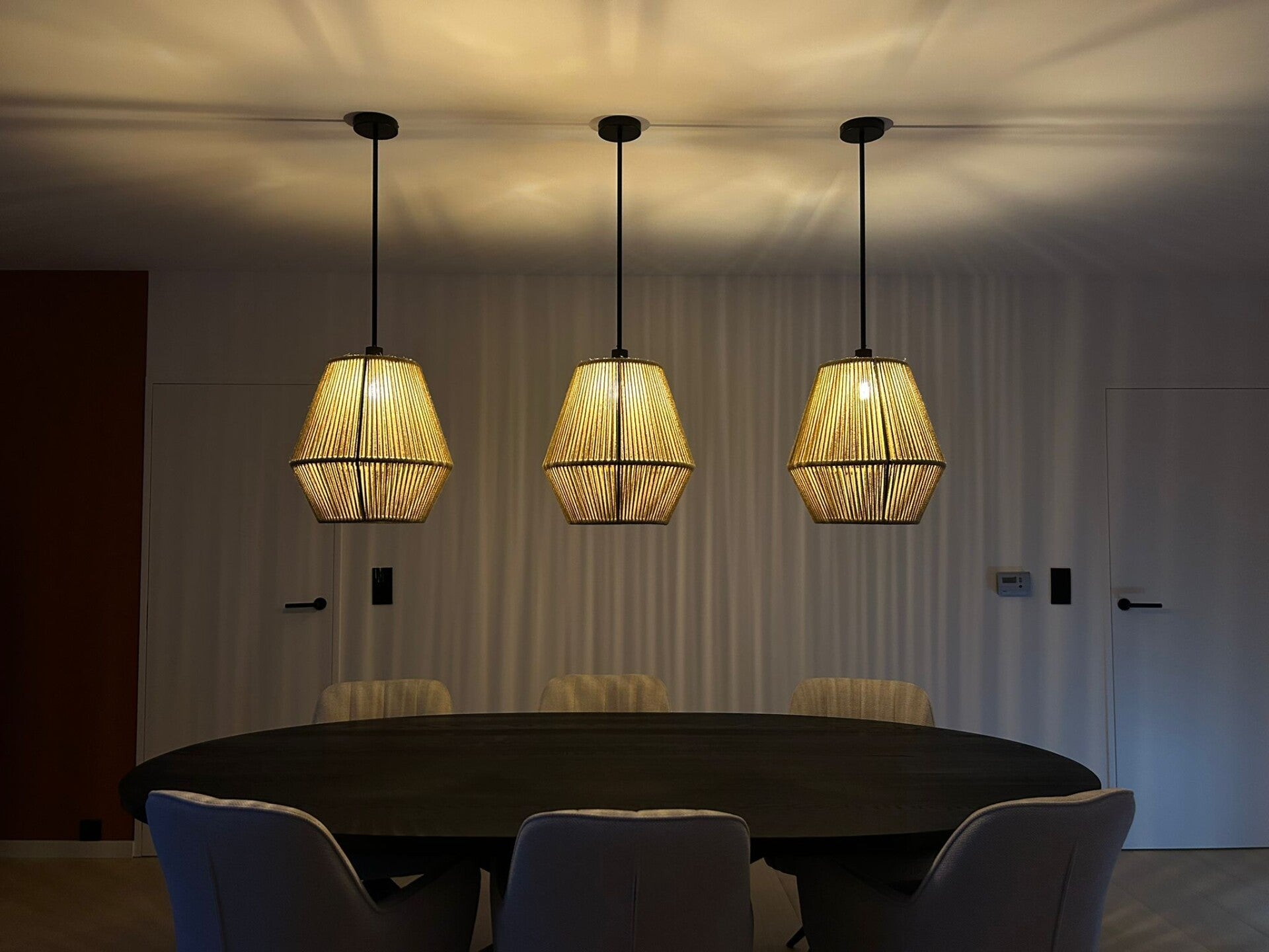 Dankzij haar stoere touwen, stijlvolle uitstraling en warme licht verspreidt ze instant gezelligheid – zowel buiten als binnen in je tuin, terras, poolhouse of woonkamer.